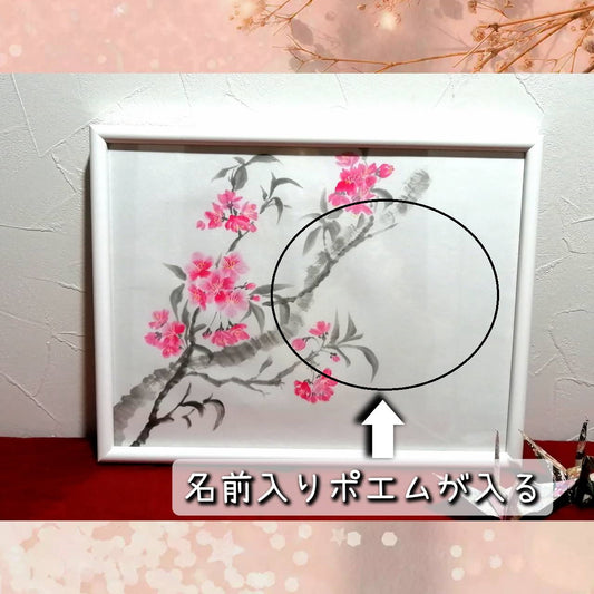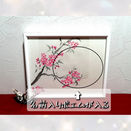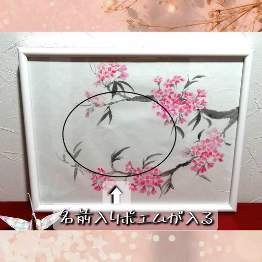 【図案番号(1-1):桜】(1人用)水墨画と名前入りポエム