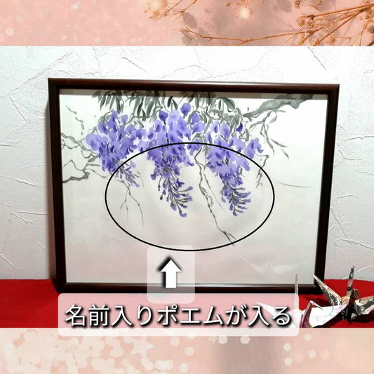 【図案番号(2-6):藤の花】(1~2人用)水墨画と名前入りポエム