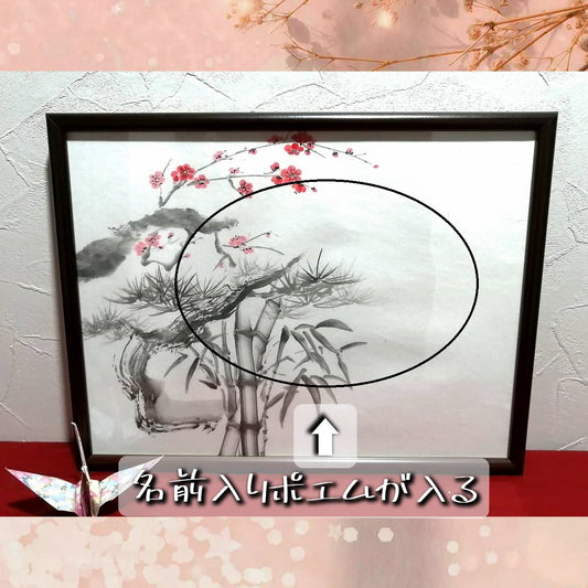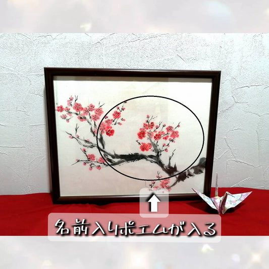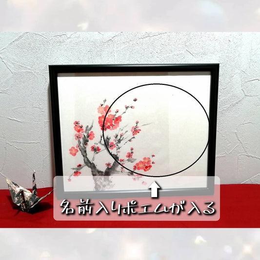 【図案番号(1-3):紅梅】(1人用)水墨画と名前入りポエム