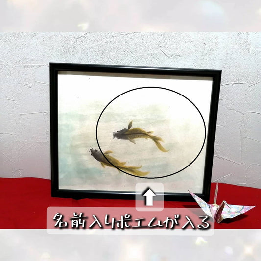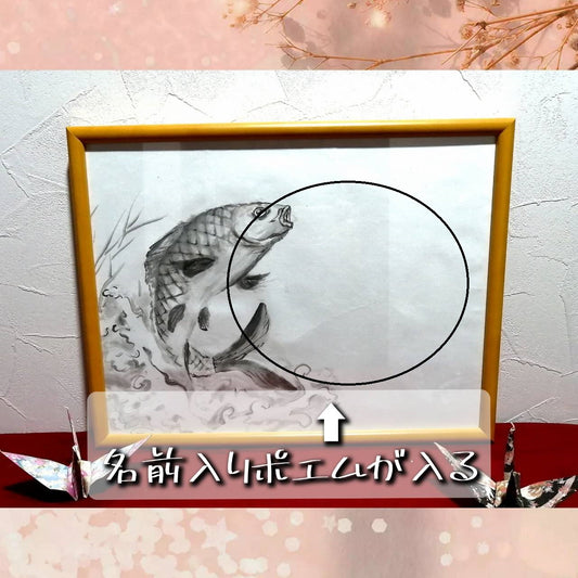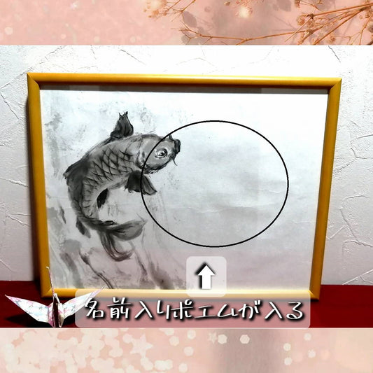 【図案番号(2-10):鯉】(1~2人用)水墨画と名前入りポエム