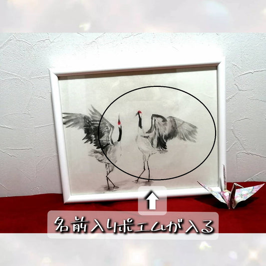 【図案番号(1-10):鶴】(1人用)水墨画と名前入りポエム