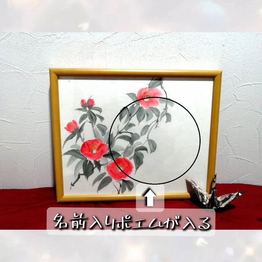 【図案番号(1-6):椿の花】(1人用)水墨画と名前入りポエム
