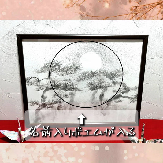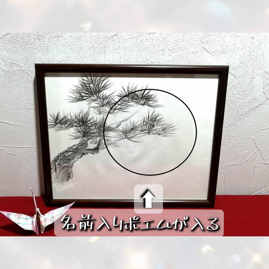 【図案番号(1-7):松】(1人用)水墨画と名前入りポエム