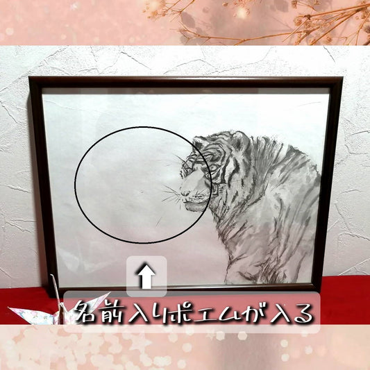 【図案番号(2-9):虎】(1~2人用)水墨画と名前入りポエム