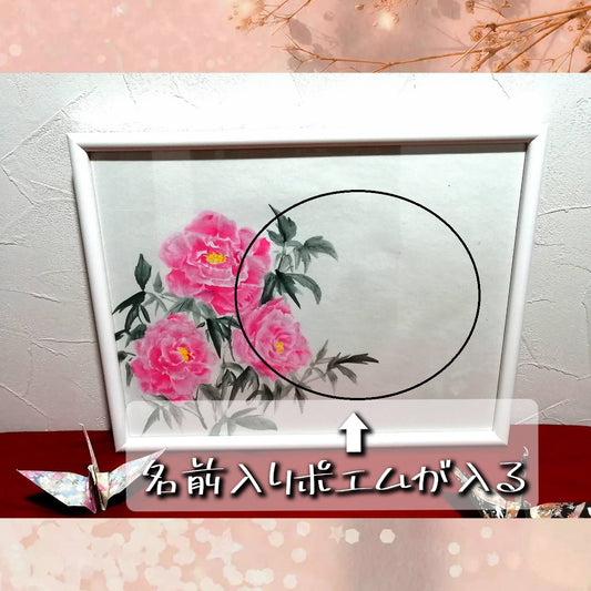 【図案番号(2-3):牡丹】(1~2人用)水墨画と名前入りポエム