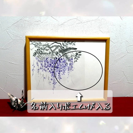 【図案番号(1-5):藤の花】(1人用)水墨画と名前入りポエム