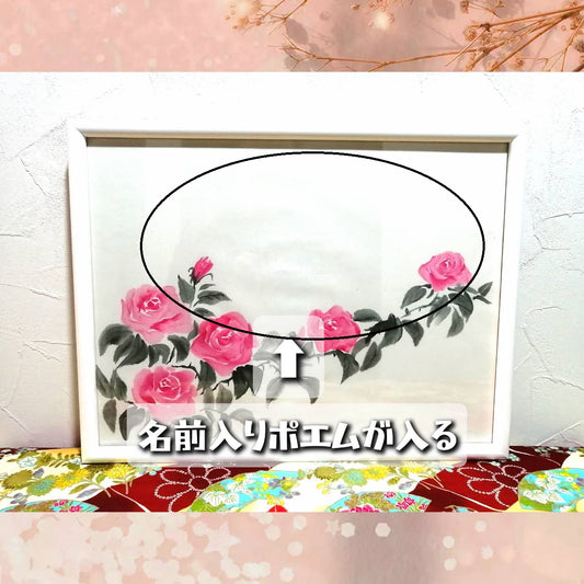 【図案番号(1-8):薔薇】(1人用)水墨画と名前入りポエム